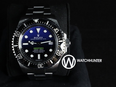 Defying the impossible The Oyster Perpetual Rolex Deepsea in Oystersteel with a Cerachrom bezel insert in black ceramic and an Oyster bracelet. Technical details Reference 136660 Model case Oyster, 44 mm, Oystersteel Oyster architecture Monobloc middle case, screw-down case back and winding crown. Rolex Ringlock System case architecture with Helium escape valve Diameter 44 mm Material Oystersteel Bezel Unidirectional rotatable 60-minute graduated, scratch-resistant Cerachrom insert in black ceramic, numerals and graduations coated in platinum Winding crown Screw-down, Triplock triple waterproofness system Crystal Domed, 5.5 mm-thick scratch-resistant sapphire Water resistance Waterproof to 3,900 metres / 12,800 feet, helium escape valve Movement Perpetual, mechanical, self-winding Calibre 3235, Manufacture Rolex Precision -2/+2 sec/day, after casing Functions Centre hour, minute and seconds hands. Instantaneous date with rapid setting. Stop-seconds for precise time setting Oscillator Paramagnetic blue Parachrom hairspring. High-performance Paraflex shock absorbers Winding Bidirectional self-winding via Perpetual rotor Power reserve Approximately 70 hours Bracelet Oyster, three-piece solid links Material Oystersteel Clasp Folding Oysterlock safety clasp with Rolex Glidelock extension system Dial D-blue Details Highly legible Chromalight display with long-lasting blue luminescence |