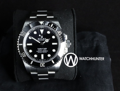 Deep confidence The Oyster Perpetual Submariner in Oystersteel with a Cerachrom bezel insert in black ceramic and a black dial with large luminescent hour markers. Submariner technical details Reference 124060 Model case Oyster, 41 mm, Oystersteel Oyster architecture Monobloc middle case, screw-down case back and winding crown Diameter 41 mm Material Oystersteel Bezel Unidirectional rotatable 60-minute graduated, scratch-resistant Cerachrom insert in black ceramic, numerals and graduations coated in platinum Winding crown Screw-down, Triplock triple waterproofness system Crystal Scratch-resistant sapphire Water resistance Waterproof to 300 metres / 1,000 feet Movement Perpetual, mechanical, self-winding Calibre 3230, Manufacture Rolex Precision -2/+2 sec/day, after casing Functions Centre hour, minute and seconds hands. Stop-seconds for precise time setting Oscillator Paramagnetic blue Parachrom hairspring. High-performance Paraflex shock absorbers Winding Bidirectional self-winding via Perpetual rotor Power reserve Approximately 70 hours Bracelet Oyster, three-piece solid links Material Oystersteel Clasp Folding Oysterlock safety clasp with Rolex Glidelock extension system Dial Black Details Highly legible Chromalight display with long-lasting blue luminescence |