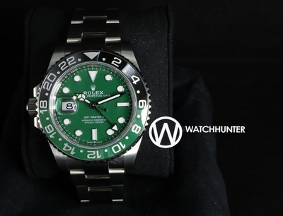 In connection with the world The Oyster Perpetual GMT-Master II in 18 ct white gold with a green ceramic dial and an Oyster bracelet. technical details Reference 126729VTNR Model case Oyster, 40 mm, white gold Oyster architecture Monobloc middle case, screw-down case back and winding crown Diameter 40 mm Material 18 ct white gold Bezel Bidirectional rotatable 24-hour graduated bezel. Two-colour green and black Cerachrom insert in ceramic, moulded numerals and graduations Winding crown Screw-down, Triplock triple waterproofness system Crystal Scratch-resistant sapphire, Cyclops lens over the date Water resistance Waterproof to 100 metres / 330 feet Movement Perpetual, mechanical, self-winding, GMT function Calibre 3285, Manufacture Rolex Precision -2/+2 sec/day, after casing Functions Centre hour, minute and seconds hands. 24-hour display. Second time zone with independent rapid-setting of the hour hand. Instantaneous date. Stop-seconds for precise time setting Oscillator Paramagnetic blue Parachrom hairspring. High-performance Paraflex shock absorbers Winding Bidirectional self-winding via Perpetual rotor Power reserve Approximately 70 hours Bracelet Oyster, three-piece solid links Material 18 ct white gold Clasp Folding Oysterlock safety clasp with Easylink 5 mm comfort extension link Dial Green ceramic Details Highly legible Chromalight display with long-lasting blue luminescence |