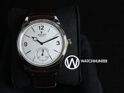 Cutting-edge classicism The Perpetual 1908 features a 39 mm case in 18 ct white gold with an alligator leather strap. 1908 Technical details Reference 52509 Model case 39 mm, 18 ct white gold, polished finish Diameter 39 mm Material 18 ct white gold Bezel Domed and fluted Winding crown Domed Crystal Scratch-resistant sapphire Case back Domed transparent case back with anti-reflective coating Water resistance Waterproof to 50 metres / 165 feet Movement Perpetual, mechanical, self-winding Calibre 7140, manufacture Rolex Precision -2/+2 sec/day, after casing Functions Centre hour and minute hands, small seconds hand at 6 o’clock. Stop-seconds for exact time setting Oscillator Syloxi hairspring in silicon with patented geometry. High-performance Paraflex shock absorbers Winding Bidirectional self-winding via Perpetual rotor Power reserve Approximately 66 hours Bracelet Leather strap Material Matt brown alligator leather Clasp Double folding Dualclasp Dial Intense white |