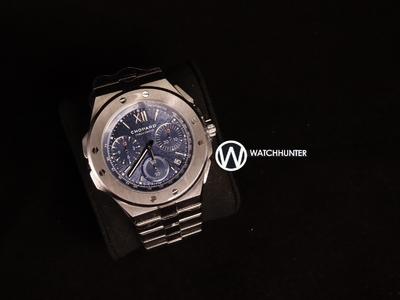 44 MM, AUTOMATIC, CHOPARD LUCENT STEEL A223 DESCRIPTION Both elegant and sport-inspired, the new Alpine Eagle XL Chrono is a modern interpretation of the St. Moritz launched in 1980, the first watch designed by Karl-Friedrich Scheufele, today co-president of Chopard. Expressing its creator's passion for the Alps and inspired by the nobility of the eagle, this timepiece is crafted in Lucent Steel A223, and it features a chronometer-certified integrated chronograph movement with a flyback feature. Alpine Eagle pays tribute to today's eagles – those ambitious people who surpass themselves on a daily basis, and whose vision is an inspiration for their peers. Determined and avant-garde, they rise to tomorrow's challenges with verve, and are instinctively aware of the importance of environmental issues.